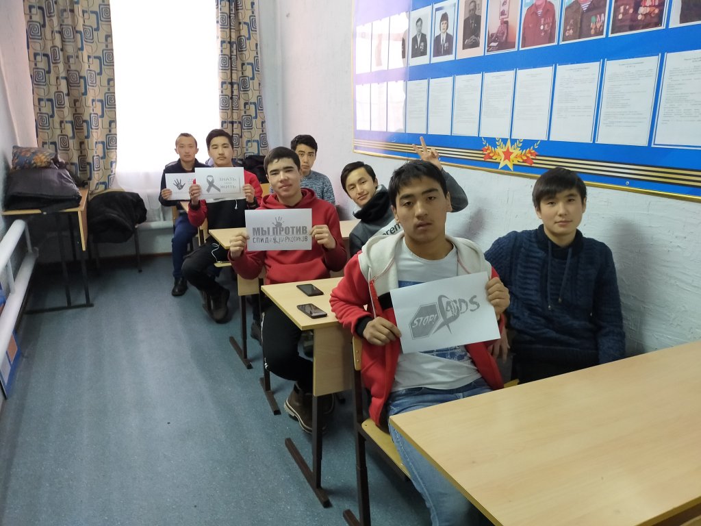22 қараша 2019 ж.Б-64 тобында "1 желтоқсан - Бүкіләлемдік ЖҚТБ-мен күрес күні" атты сынып сағаты өтті. Сынып жетекшісі Г. А. Кулакова, ө / о шебері С. К. Сейтжанова.
