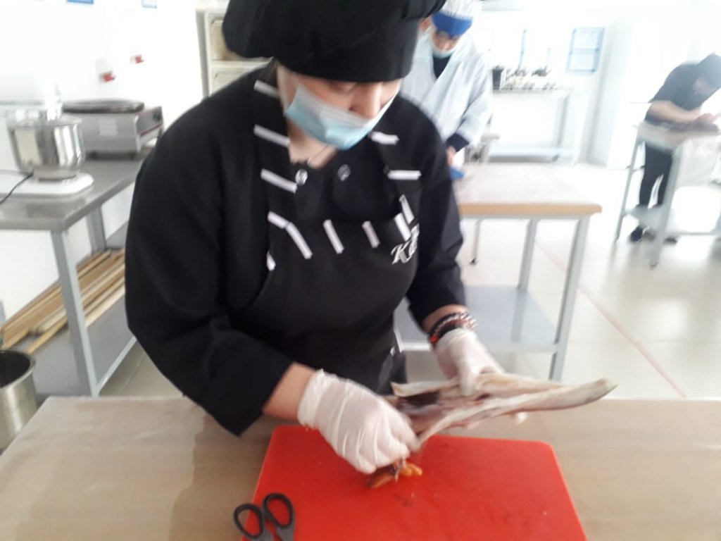 Оп-20/68 тобын өндірістік оқыту Тақырыбы: "Тауық етін өңдеу". Өңделген құстан топ студенттері келесі тағамдарды дайындады: тауық етінен жасалған қабатты салат, толтырылған пирогтар картоп тауық еті, гарнирмен толтырылған тауық еті, палау. Өндірістік оқыту шебері:...