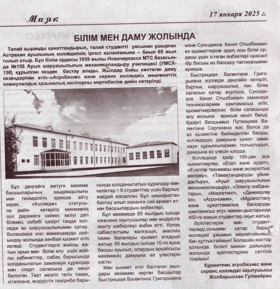 «АГРОБИЗНЕС ЖӘНЕ СЕРВИС КОЛЛЕДЖІ» МКҚК