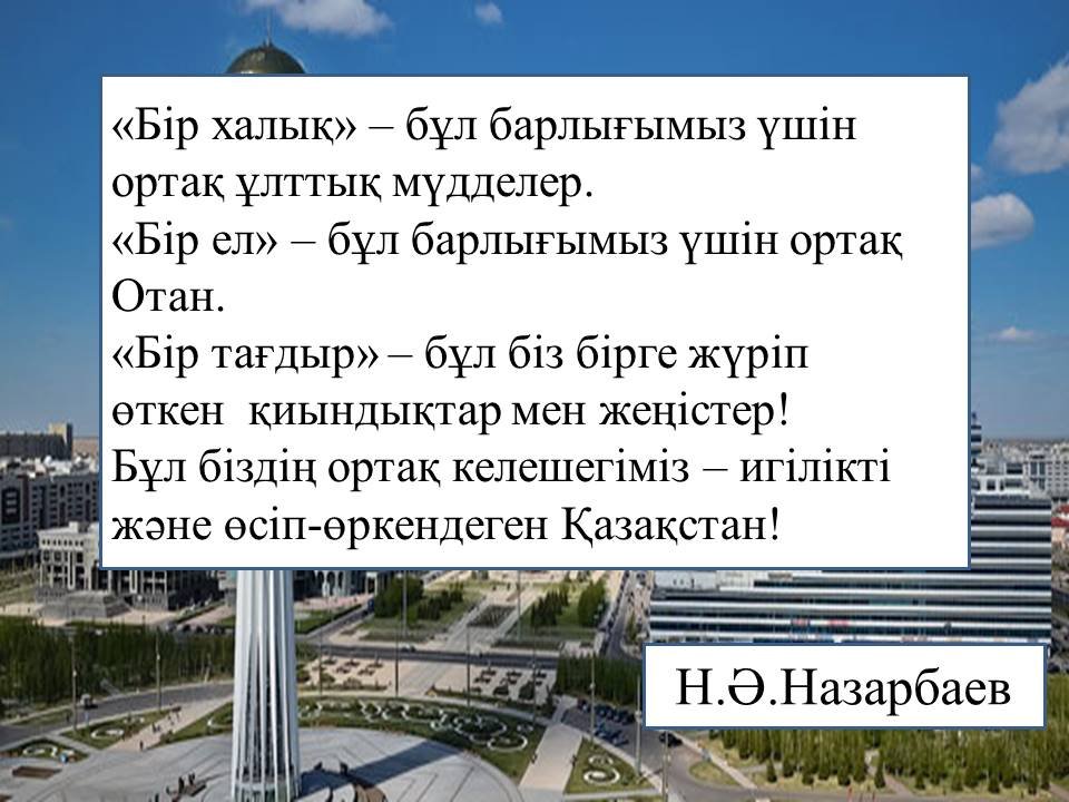 Бұл күн – ата-бабамыз аңсаған арманның жүзеге асқан, елімізге еркіндік сыйлаған Ұлы күн. Осындай маңызы бар тарихи думанда еліміздің туы асқақтап, келешегі өркейе берсін. Сіздерге мықты...