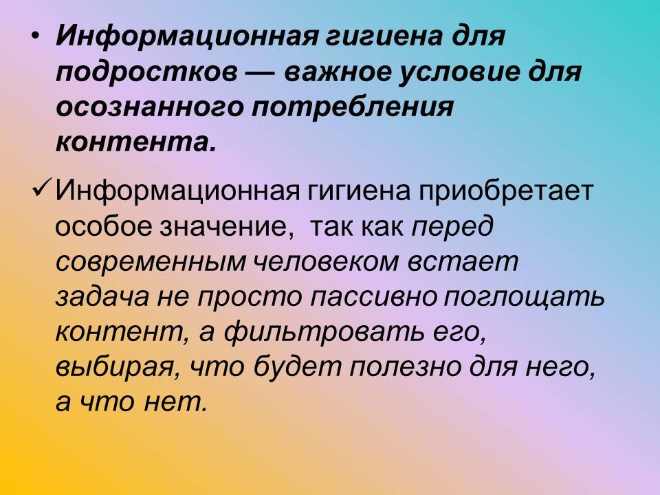 Жасөспірімдерге арналған ақпараттық гигиена мазмұнды саналы түрде тұтынудың маңызды шарты болып табылады.