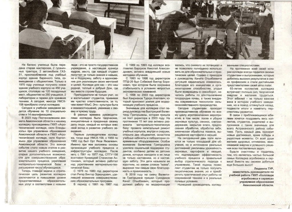 Ақмола облысы білім басқармасының жанындағы "агробизнес және сервис колледжі" МКҚК тарихы — бұл жай ғана күндер мен фактілер емес, бұл дамуға, жеңістерге және қиындықтарды жеңуге деген ұмтылысқа толы тарих. Алпыс бес жыл ішінде колледж шағын училищеден қазіргі заманғы білім беру мекемесіне дейінгі жолдан өтті, оның түлектері тек Ақмола облысында ғана емес, одан тыс жерлерде де сұранысқа ие. Біздің колледж тек мемлекеттік мекеме ғана емес, сонымен қатар әрбір студент білім мен дағдыларды ғана емес, сонымен қатар олардың армандары мен мақсаттарын жүзеге асыру үшін қолдау, қамқорлық және шабыт алатын нағыз кадрлар ұстасы екенін мақтан тұтамыз. Біз үшін Колледж-бұл біздің туған, жылы және мейірімді үйіміз, онда біз болашақты бірге құрамыз.