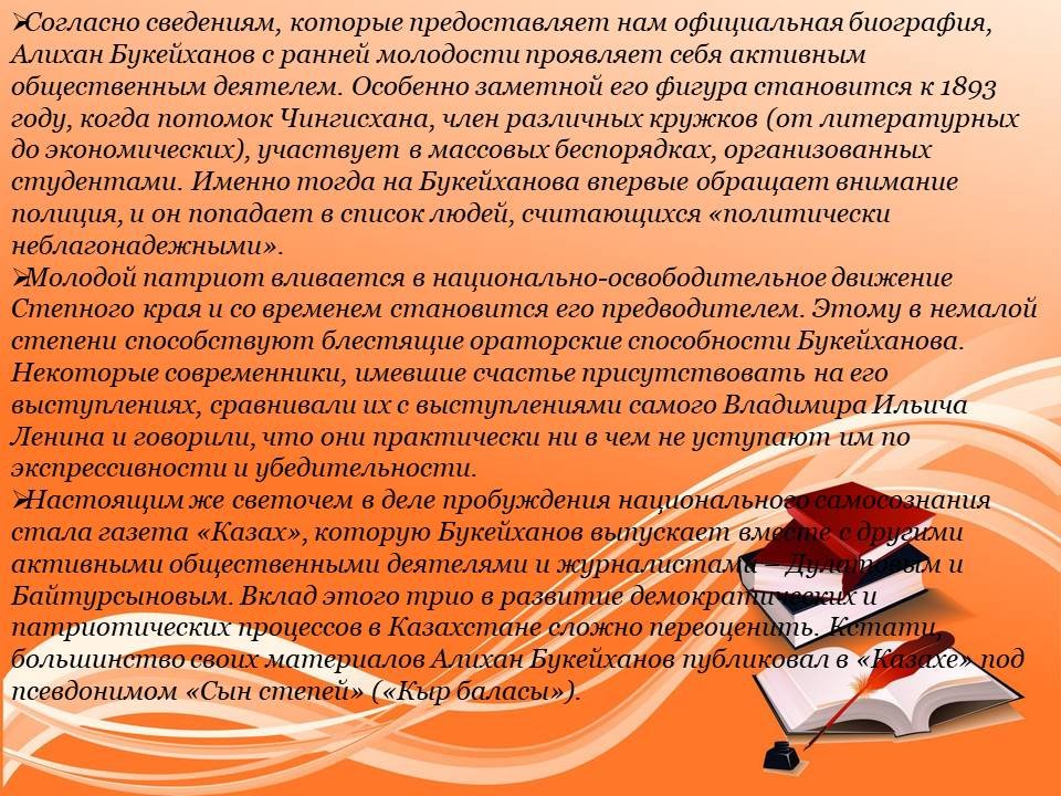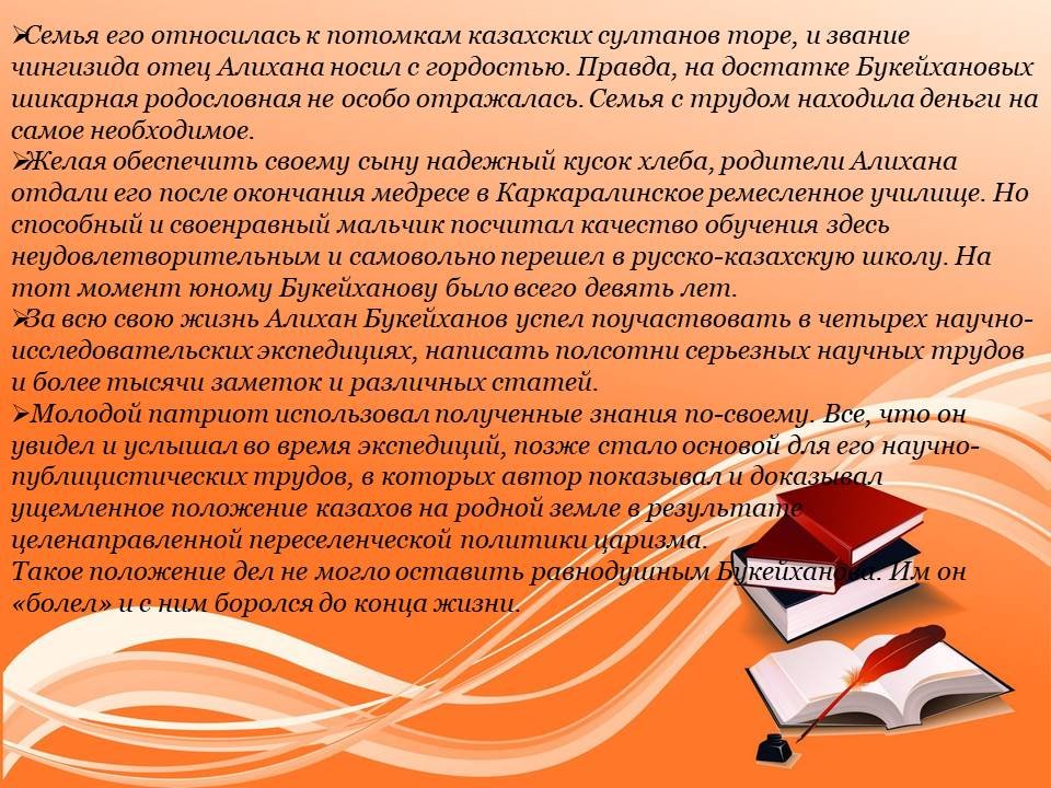 Белсенді қоғам қайраткері, Жарқын саясаткер, тамаша публицист, талантты зерттеуші және бас әріппен жазылған патриот... Этнограф, агроном, экономист, заңгер, әдебиеттанушы – бұл оның барлық рөлдерінің толық тізімі емес. Қазақстан тарихы осындай ауқымдағы тұлғаларды көп білмейді! Бүгінде оның өмірбаяны мен өмір-тіршілігі Қазақстан мектептерінде зерттелуде. Бұл елде ол ұлттық батыр болып саналады. Осы себепті қазақстандық тарих оқулықтарында оның көптеген беттері жазылған. Сонымен, осы ұлы адамның өмірбаянына толығырақ тоқталайық. Болашақ Ұлт Көшбасшысының балалық шағы мен жасөспірімі Семей облысының Қарқаралы уезінің (қазіргі Қарағанды облысының Ақтоғай ауданы) Тоқырауын болысының №7 тұйық ауылында өтті. Дәл сол жерде 1866 жылдың бесінші наурызында Әлихан Нұрмұхамедұлы Бөкейханов дүниеге келіп, әкемнің анасымен тұңғышы болады.