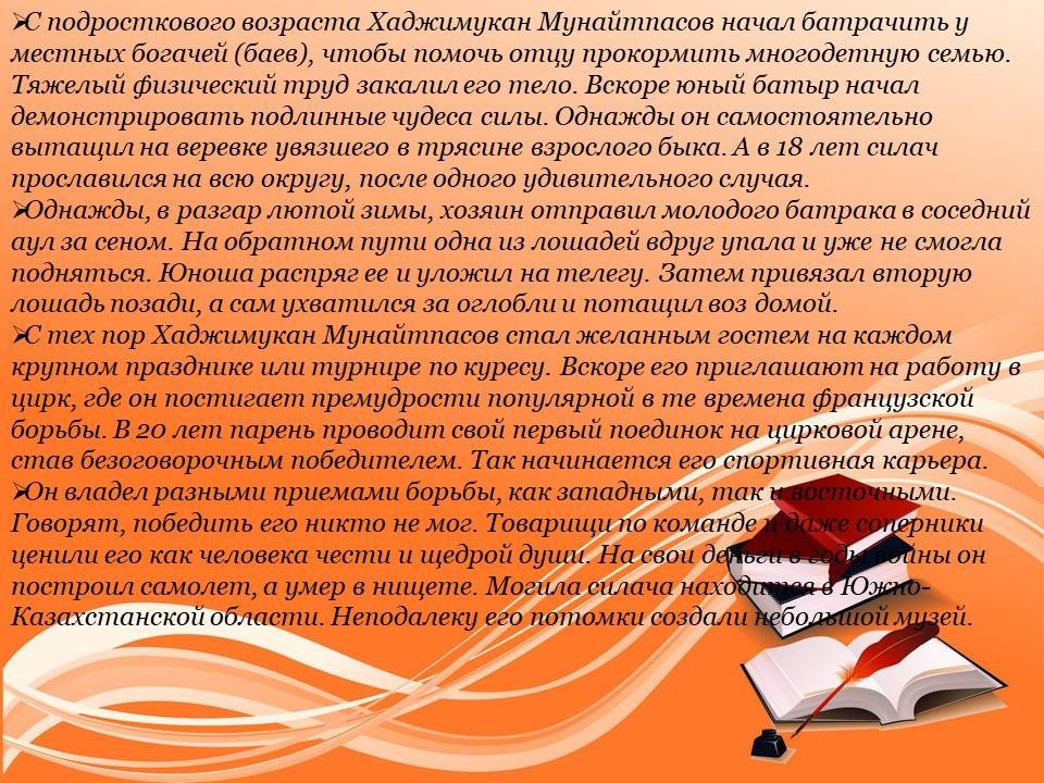 Қажымұқан Мұңайтпасов-қазақ батыры, ол бүгінгі күнге дейін ұлттық қаһарман және үлгі тұтар тұлға болып қала береді. Өзінің күрес мансабы жылдарында бұл мықты спортшы ең қарапайым есептеулер бойынша әр түрлі деңгейдегі 50-ге жуық медаль жеңіп алды. Бүкіл әлемде ол әртүрлі атаулармен танымал болды, олардың ішіндегі ең танымалы Ямагат Мухунуридің "қорқынышты самурай" сахналық лақап аты болды. Бұл спорт жетістіктері тыйым салынған заттарды қолданбай мүмкін болатын мысалдардың бірі. 1871 жылы 7 сәуірде Қараөткел (Оңтүстік Қазақстан) тұйық Дала ауылында дүниеге келген. Басқа мәліметтер бойынша, ол 1885 жылы туылуы мүмкін, бұл оның өмірбаянының кейбір фактілеріне сәйкес келеді. Мұңайтпасов руы зор күшпен танымал болғаны белгілі. Аңыз бойынша, оның аналық атасы соншалықты күшті болғандықтан, ол орташа ағашты тамырымен жұлып ала алды. Бұған сену, әрине, өте қиын, бірақ біздің кейіпкеріміздің әкесі мен екінші атасы күрес Күштерінде (куреш) ұлттық күрестің танымал шеберлері болғандығы даусыз. Олар жас Мұқанның алғашқы тәлімгерлері болды.