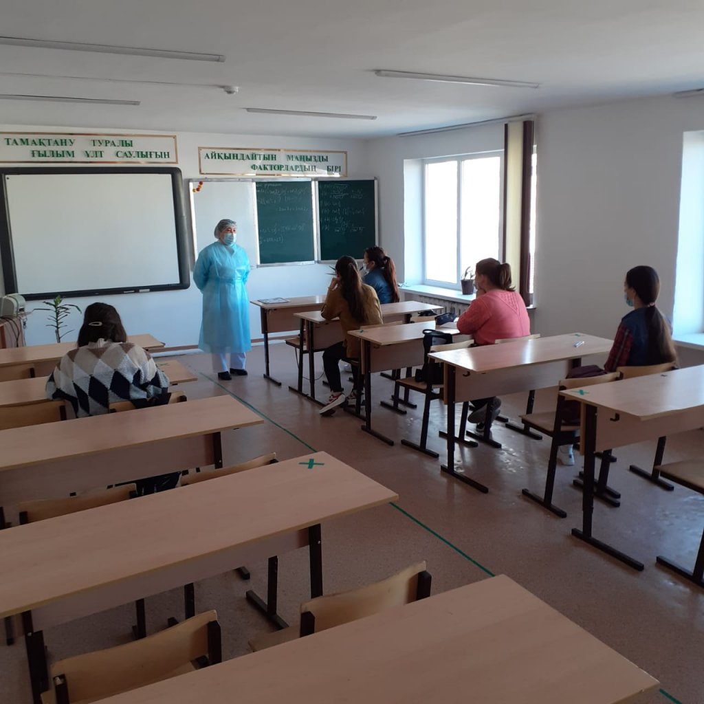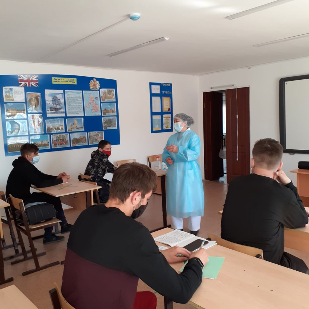 21 сәуірде колледж студенттерімен, қызметкерлерімен колледждің медицина қызметкері А.Ж. Балғабаева COVID-19 коронавирустық инфекциясы бойынша әңгіме өткізілді. Әңгімелесу барысында студенттер мен қызметкерлерге COVID 19 белгілері, ауру белгілері анықталған кездегі іс-әрекеттердің реттілігі, аурудың алдын алу және алдын алу шаралары, коронавирустық инфекцияның алдын алу бойынша алдын алу шараларын сақтамағаны үшін жауапкершілік және т. б. туралы айтылды. Барлық білім алушыларға вирустық аурулардың алдын алу бойынша жадынамалар таратылды.