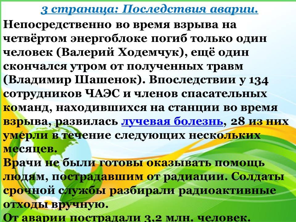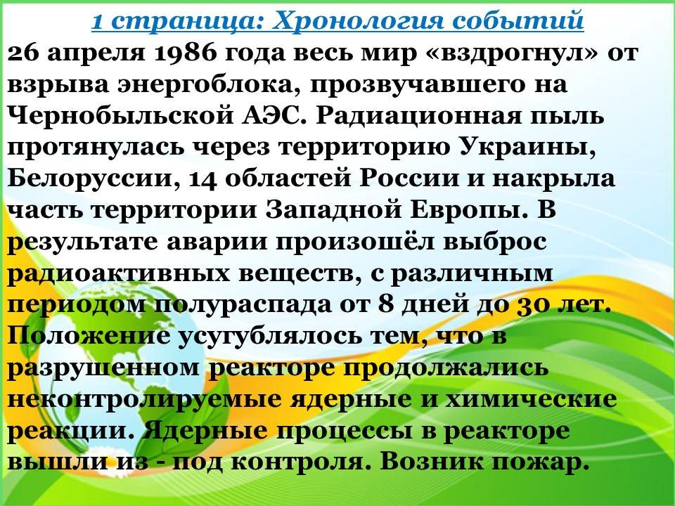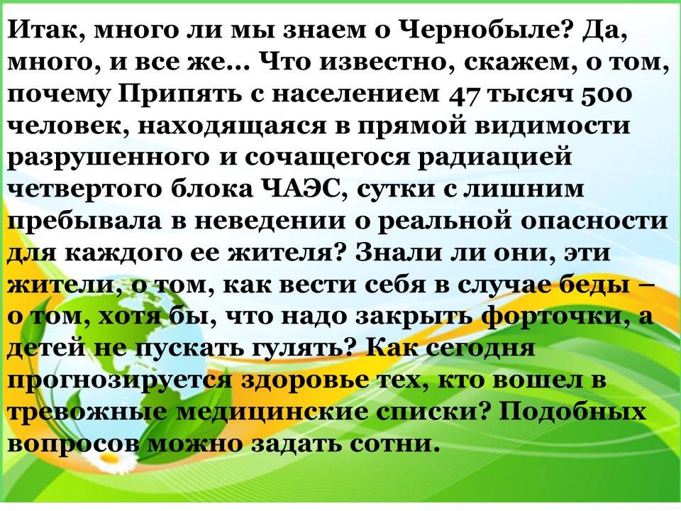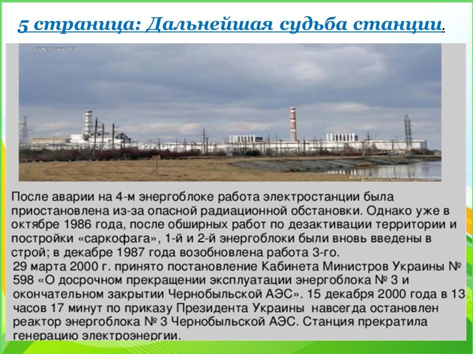 6 бет: бүгін Чернобыль