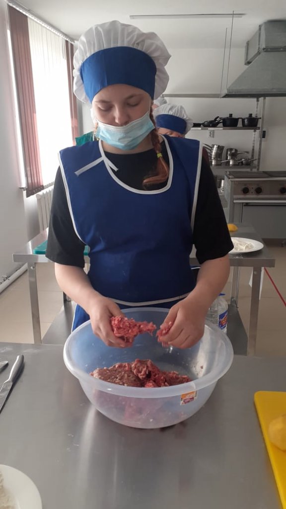 Оп-20/68 тобын өндірістік оқыту Тақырыбы: "Котлет массасынан жасалған жартылай фабрикаттар" Топ студенттері "Манти" дайындады" Квинт шебері Н. В