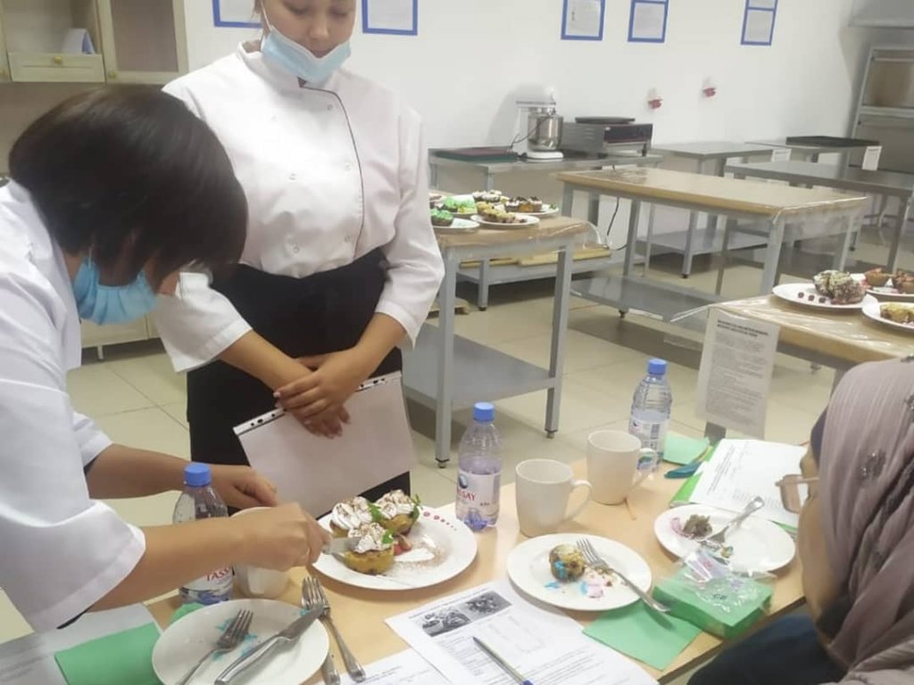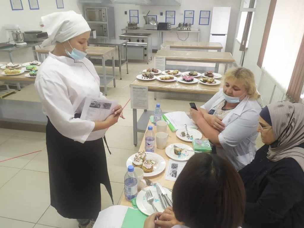 23.06.2021.ОП-19/ 62 тобында "Тамақтандыруды ұйымдастыру" мамандығы бойынша "Кондитер" біліктілігі бойынша Мемлекеттік біліктілік емтиханы өтті.