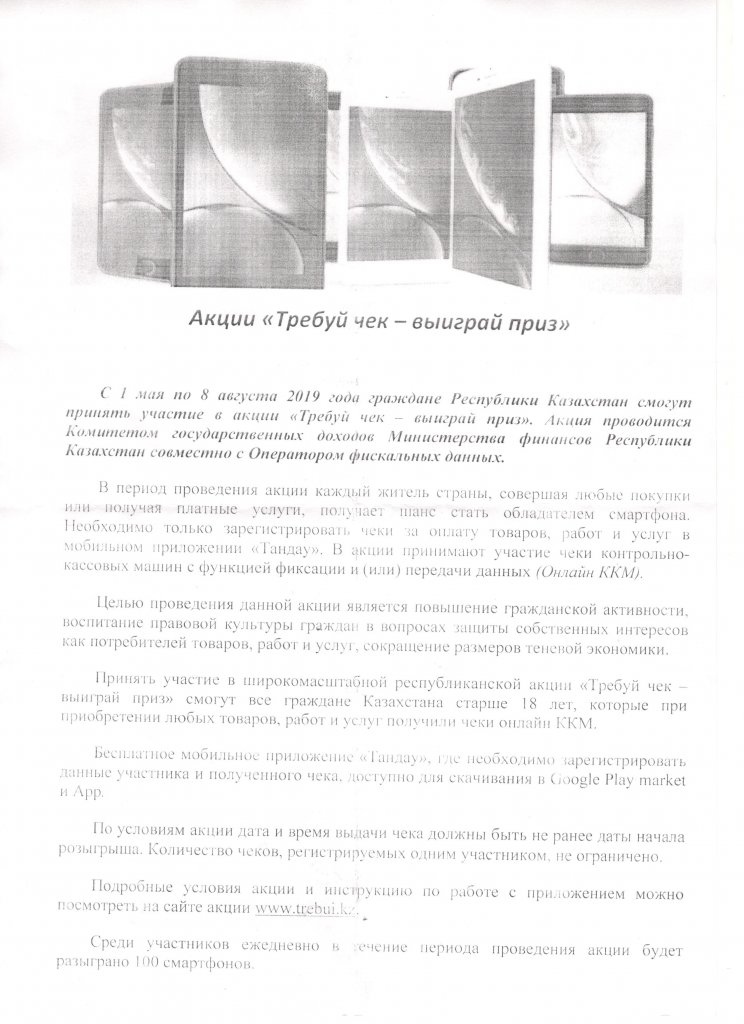 2019 жылы 17 мамырда Астрахан ауданының мемлекеттік кірістер басқармасы жетекші О. П. Удовиченко колледж студенттерімен және қызметкерлерімен "Чек талап ет – сыйлық ұтып ал" тақырыбында әңгіме өткізді.