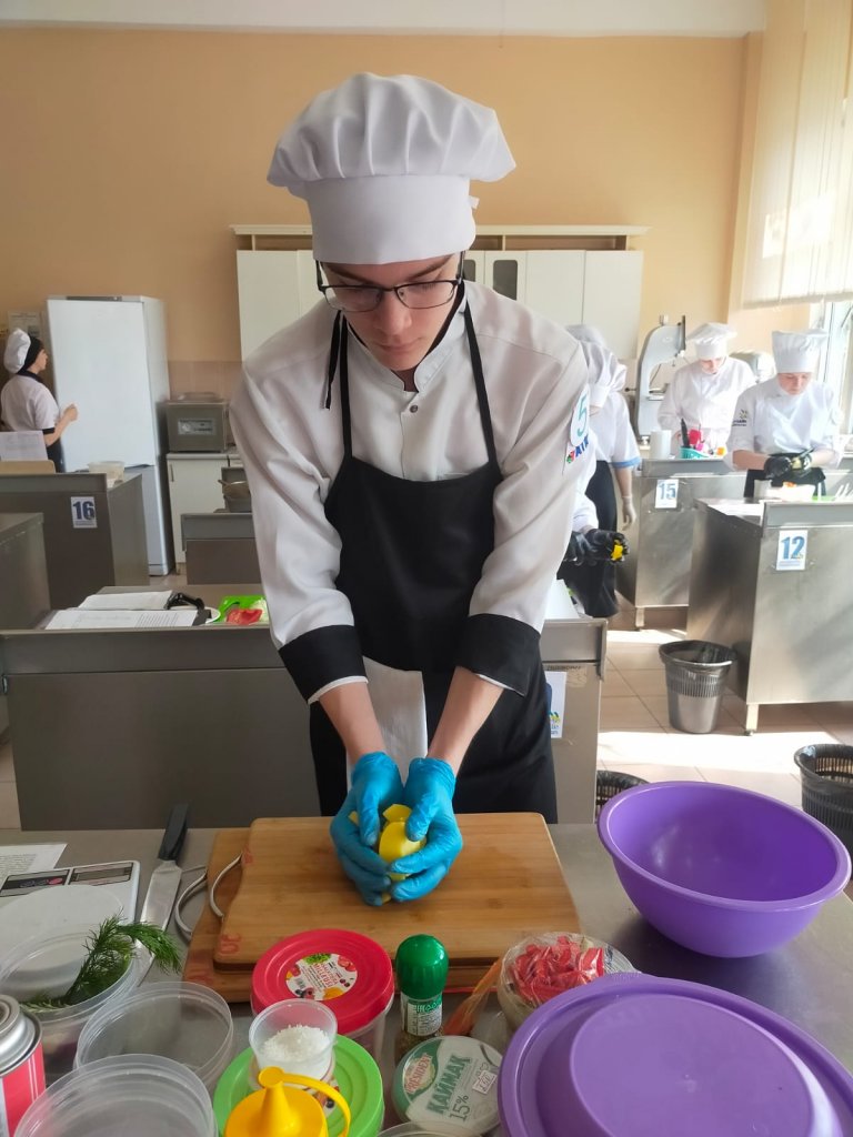 Біздің колледж WorldSkills -2022 "Жас кәсіпқойлар" чемпионатында. "Аспаз ісі" құзыреттілігі бойынша оп-21/72 тобының бірінші курс студенті Никитина Полина қатысты.