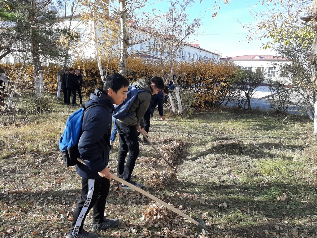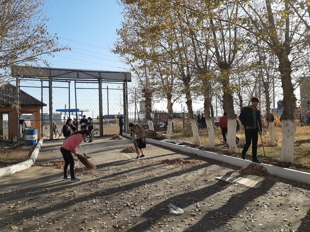 Олар айналаны абаттандырып, ағаштарды ағартты, қоқыстарды тазартты, жиналған құрғақ жапырақтар мен кесілген ағаштардың, сондай-ақ айналаны тазартты. Сенбілік ашық аспан астында және күзгі көңіл-күйде өтті. Жалпы күш-жігермен колледж аумағы өзгерді - барлық жерде таза және әдемі.
