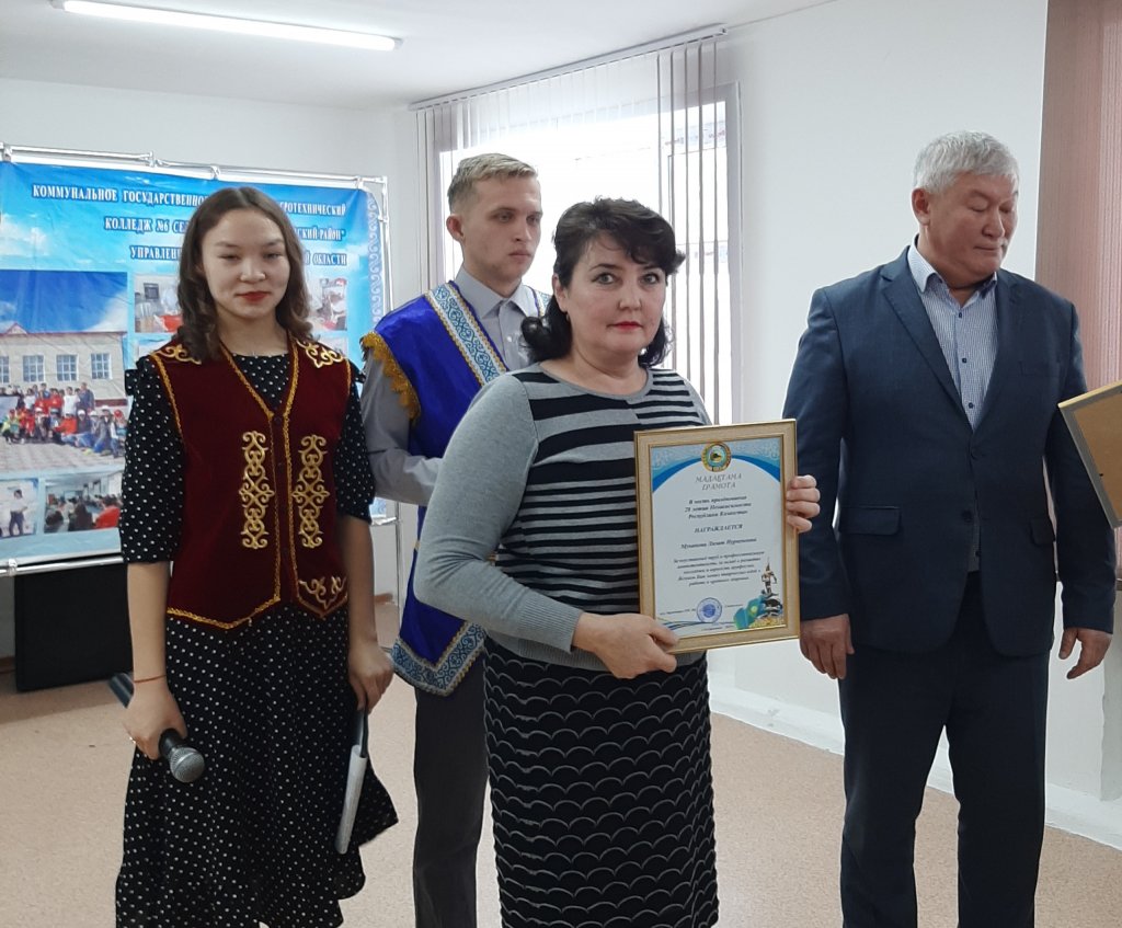 13 желтоқсан күні №6 Агротехникалық колледжінің мәжіліс залында Қазақстан Республикасының Тәуелсіздік күніне арналған мерекелік концерт өтті. Мерекелік іс-шараның бағдарламасы еліміздің Мемлекеттік Әнұранының орындалуымен басталды. Мереке атмосферасы патриоттық сезімге және өз елі үшін мақтаныш сезіміне толы болды. Бұл күні сахнадан туған жер, қазақ халқы туралы әндер шырқалды. Салтанатты концерттің маңызды оқиғасы-колледж директорының м.а. біздің оқытушылар мен қызметкерлерді үздік жұмысы үшін грамоталармен марапаттау болды. Марапатталды: Кулакова Г.А., Амантаева Э.Т., Оразбаев Ж.Ш., Кеншиликова М.М., Муканова Л. Н., Соломко Р.К., Лохбаум Л.А., Сулейменова Ж.К. Журавлева О. Л.. Алғыс хаттармен: Костюков А.В., Ажигулова Б.М., Сапакова Г.Т., Абдрахсанова Б.К., Накудаидзе Г.Р., Гейман Е.М. марапатталды.. Біздің қызметкерлерімізді зор жетістіктермен құттықтаймыз және болашақта да алда да көшбасшы болуға тілектеспіз! Қазақстан Республикасы Тәуелсіздігінің 28 жылдығымен құттықтаймыз!