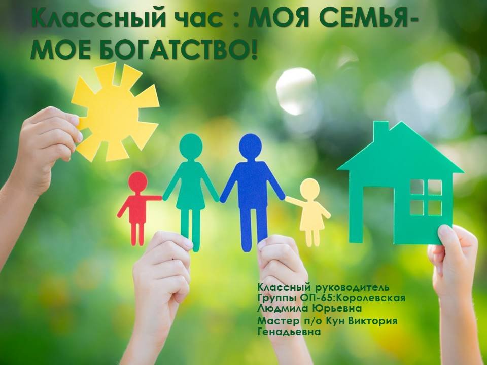 "Менің отбасым-менің байлығым!" тақырып бойынша сынып сағаты