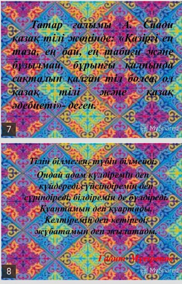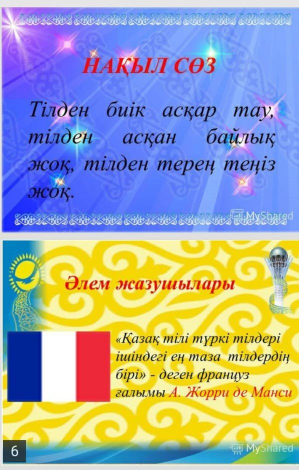 Цель: Неделя языков народов Казахстана: Строить учебный процесс с учётом темпов развития информационно–коммуникативных технологий, совершенствовать методы и приемы обучения.
