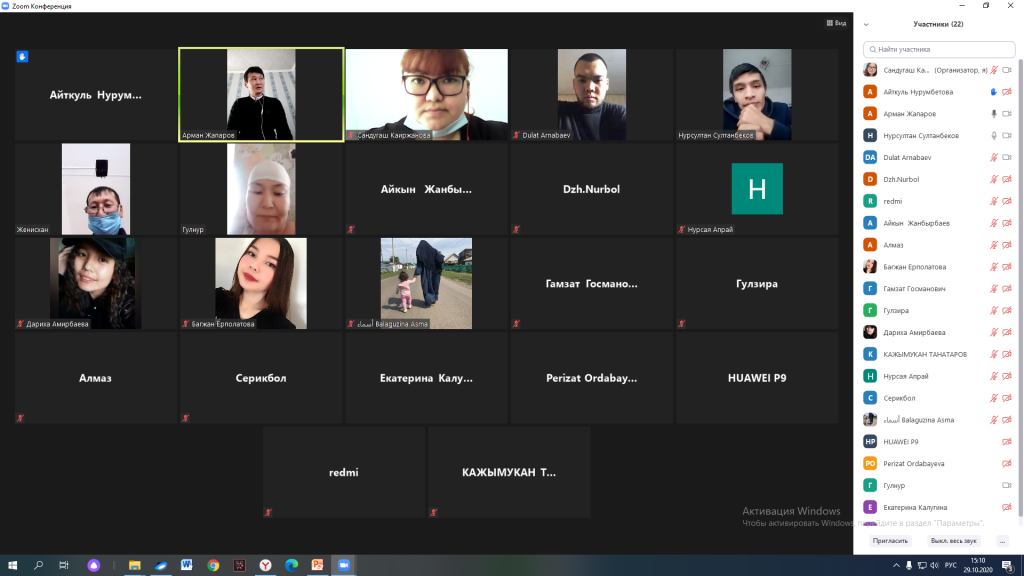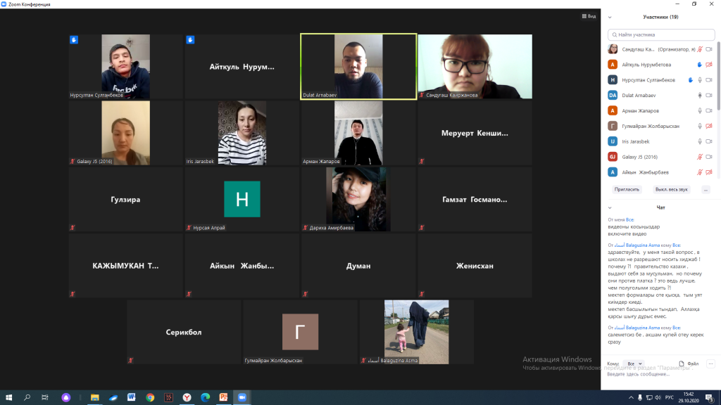 Қазан айының 29 күні «Діни экстремизм, деструктивті діни ағымдар» тақырыбында колледж студенттерімен Zoom платформасында онлайн конференция өтті. Қазіргі кезде қоғамымызды, адам санасын улап жатқан діни ағымдардың саны уақыт өткен сайын көбейіп барады. Олардың қаншама біз білмейтін түрлері бар. Сонымен қатар оның адам санасына, өміріне деген қаншалықты зиян келтіріп жатқанын көптеп естіп жүрміз. Міне осы діни ағымдар туралы студенттерге мәлімет бере отырып, біздің мұсылман дінімізде оларды қолданудың, қабылдаудың зияны мен жағымды жақтарын түсіндіре білген спикерлер, Ақмола облысының дін істері басқармасы жанындағы «Конфессияаралық қатынастарды дамыту және талдау орталығы» КММ-нің теолог маманы Арман Жапаров және Астрахан ауданы Ішкі саясатының теолог маманы Дулат Арнабаев. Осы адастырушы діни ағымдар туралы студенттерге мәлімет бере отырып және олардан аулақ болуын айтып өтті.