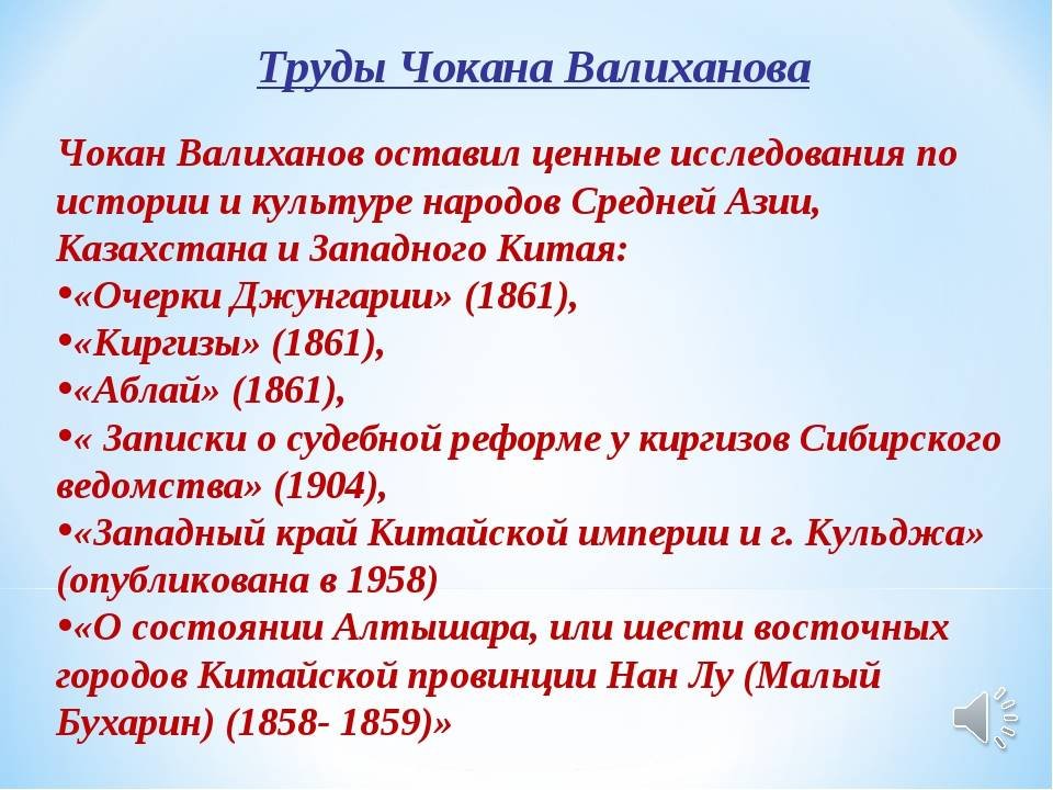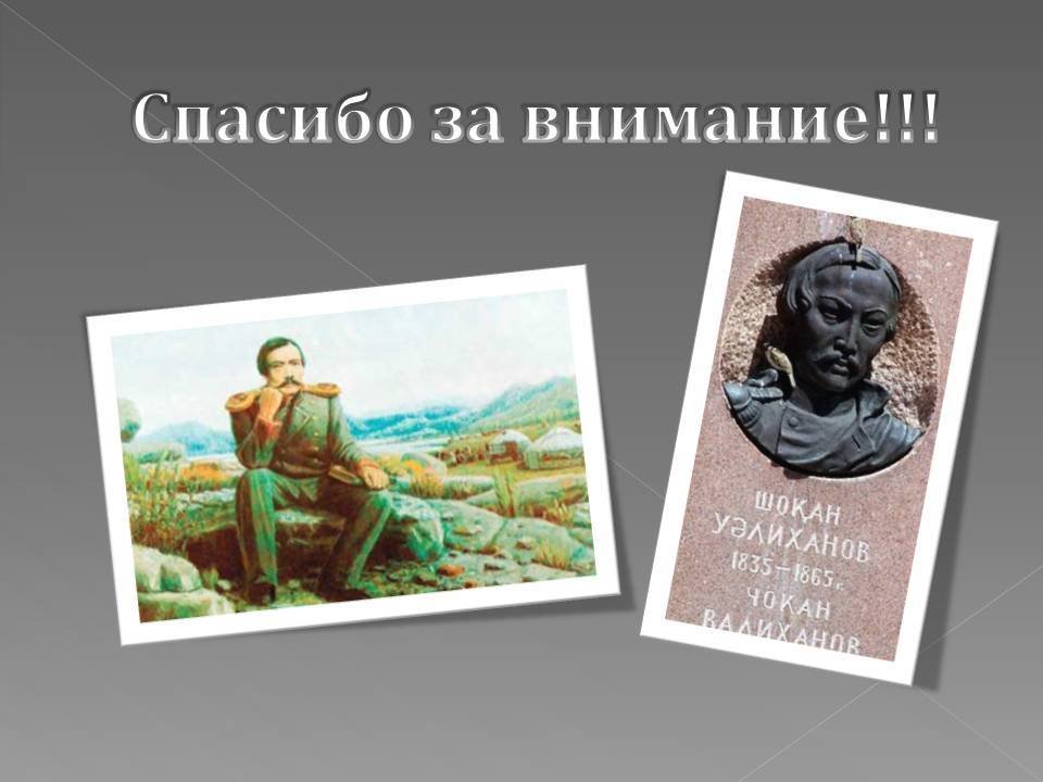 Уалиханов өз заманының озық қайраткері, керемет патриот, ғалым, ағартушы, өзін халқына қызмет етуге арнады.