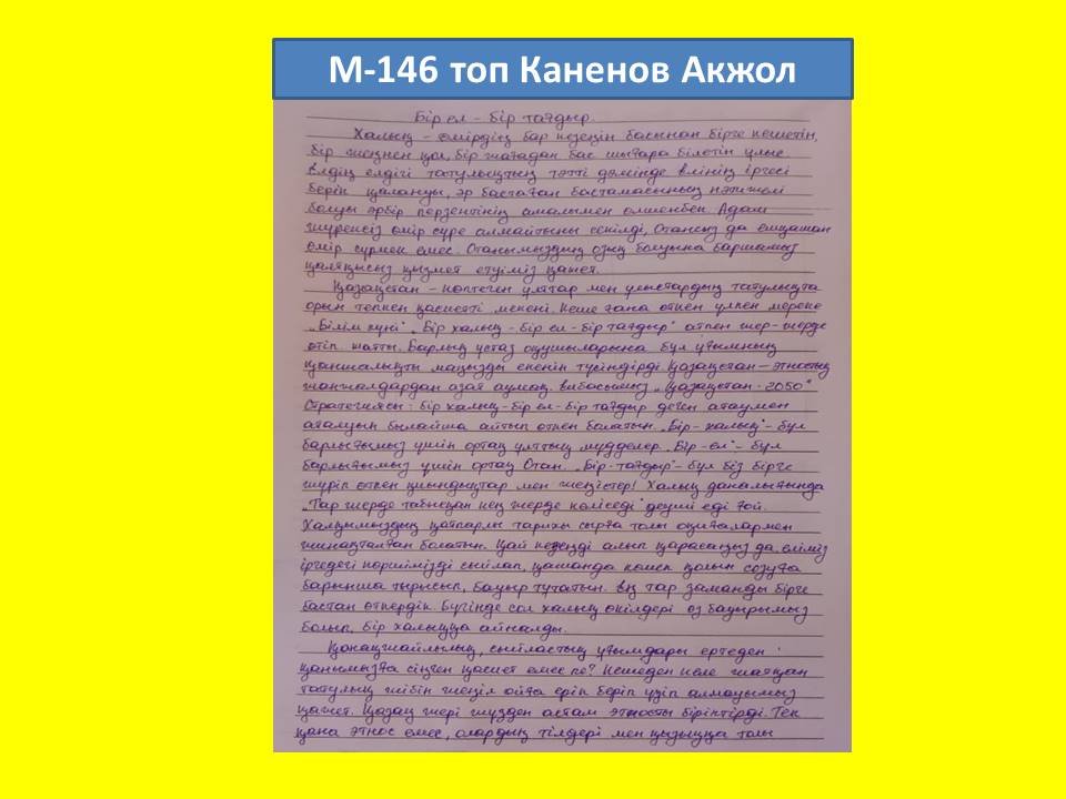 Қазақстан Республикасының Тұңғыш Президенті Күнін мерекелеу қарсаңында колледжде "Тәуелсіздіктің жеті қыры" (мемлекеттік және орыс тілдерінде) циклінің " Один народ, одна судьба", "Біл ел, бір тағдыр" тақырыбында эссе байқауы өткізілді.