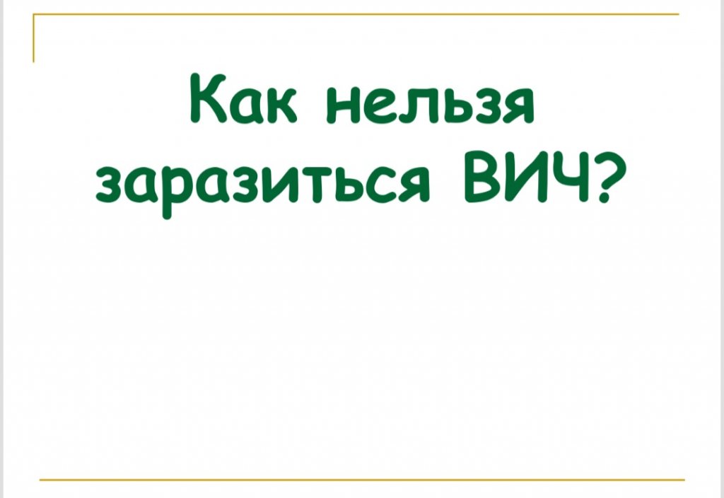 АИТВ / ЖИТС қорқыныш пен алаңдаушылық тудырады, адамдар АИТВ-ны тұрмыстық байланыс арқылы жұқтырудан қорқады. Шын мәнінде, қорқыныш ақталмайды және АИТВ жұқтырған адамдармен әдеттегі байланыс мүлдем қауіпсіз. Керісінше, бұл адамдарға қолдау мен түсіністік қажет.
